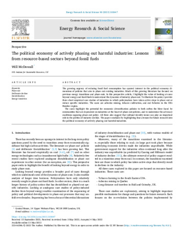 Title: | The political economy of actively phasing out harmful industries: Lessons from resource-based sectors beyond fossil fuels |