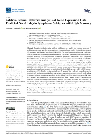 Title: | Artificial Neural Network Analysis of Gene Expression Data Predicted Non-Hodgkin Lymphoma Subtypes with High Accuracy |
