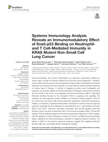 Title: | Systems Immunology Analysis Reveals an Immunomodulatory Effect of Snail-p53 Binding on Neutrophil- and T Cell-Mediated Immunity in KRAS Mutant Non-Small Cell Lung Cancer |