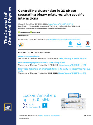 Title: | Controlling cluster size in 2D phase-separating binary mixtures with specific interactions |