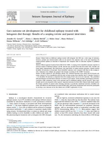 | Title: | Core outcome set development for childhood epilepsy treated with ketogenic diet therapy: results of a scoping review and parent interviews |