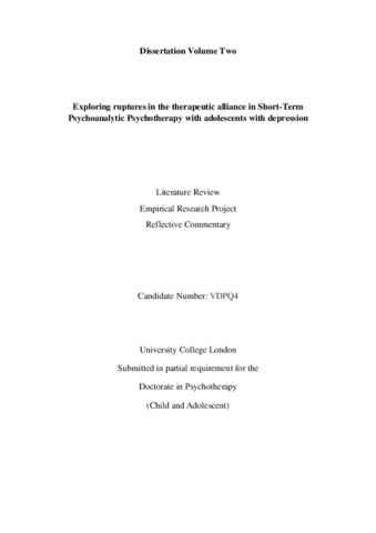 Title: | Exploring ruptures in the therapeutic alliance in Short-Term Psychoanalytic Psychotherapy with adolescents with depression |