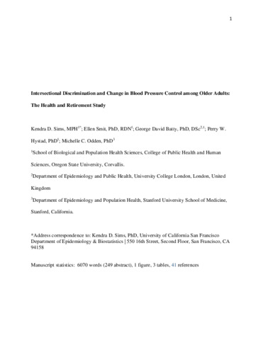 | Title: | Intersectional Discrimination and Change in Blood Pressure Control among Older Adults: The Health and Retirement Study |