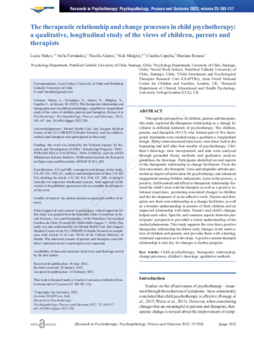 Title: | The therapeutic relationship and change processes in child psychotherapy: a qualitative, longitudinal study of the views of children, parents and therapists |