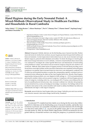 Title: | Hand Hygiene during the Early Neonatal Period: A Mixed-Methods Observational Study in Healthcare Facilities and Households in Rural Cambodia |