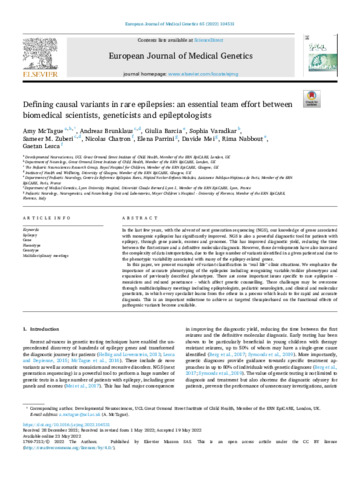 Title: | Defining causal variants in rare epilepsies: An essential team effort between biomedical scientists, geneticists and epileptologists |