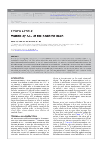 Keywords: | Artifacts, Brain, Cerebrovascular Circulation, Child, Humans, Magnetic Resonance Imaging, Spin Labels |