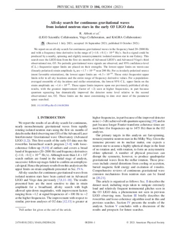 Title: | All-sky search for continuous gravitational waves from isolated neutron stars in the early O3 LIGO data |