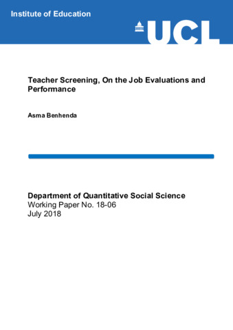 | Title: | Teacher Screening, On the Job Evaluations and Performance |
