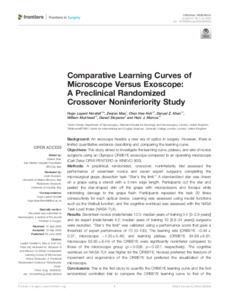 Title: | Comparative Learning Curves of Microscope Versus Exoscope: A Preclinical Randomized Crossover Noninferiority Study |