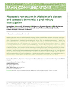 Title: | Phonemic restoration in Alzheimer's disease and semantic dementia: a preliminary investigation |
