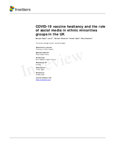 Understanding COVID-19 vaccine hesitancy in ethnic minorities Manuscript[77].PDF - Accepted Version Download (1MB) | Preview |