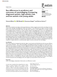 Title: | Sex differences in predictors and outcomes of camouflaging: Comparing diagnosed autistic, high autistic trait and low autistic trait young adults |