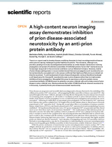 Title: | A high-content neuron imaging assay demonstrates inhibition of prion disease-associated neurotoxicity by an anti-prion protein antibody |