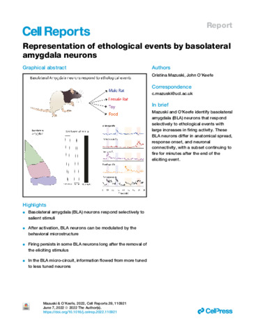 Title: | Representation of ethological events by basolateral amygdala neurons |