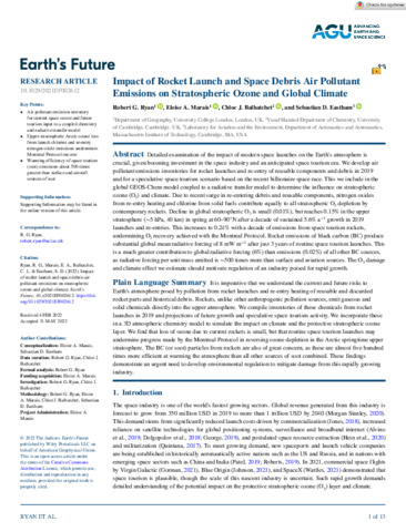 Earth s Future - 2022 - Ryan - Impact of Rocket Launch and Space Debris Air Pollutant Emissions on Stratospheric Ozone and.pdf Download (1MB) | Preview |