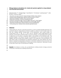 Title: | Charge balance calculations for mixed salt systems applied to a large dataset from the built environment |