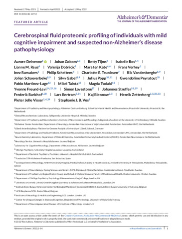 Title: | Cerebrospinal fluid proteomic profiling of individuals with mild cognitive impairment and suspected non-Alzheimer's disease pathophysiology |