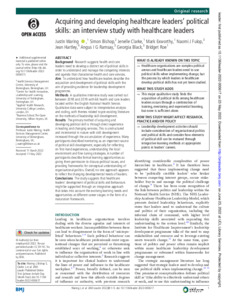 Title: | Acquiring and developing healthcare leaders’ political skills: an interview study with healthcare leaders |