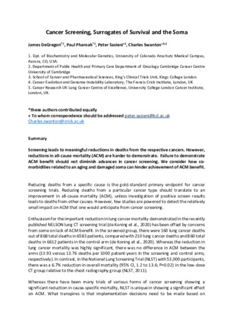 Title: | Cancer Screening, Surrogates of Survival, and the Soma |