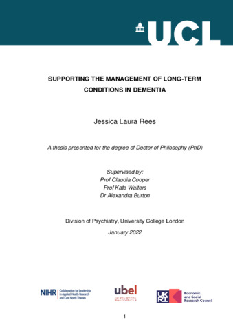 Background: Most people with dementia live with another long-term condition requiring additional support. There is little evidence about how long-term condition guidance is adapted by professionals to account for dementia, and how people with dementia and their carers manage long-term conditions in the community. / Aim: I aimed to understand how people living with dementia manage and are supported to manage co-occurring long-term conditions in the community, by family carers, homecare workers and primary care. / Methods: I systematically reviewed the literature on self-management and undertook a secondary thematic analysis exploring experiences of people living with dementia, and their carers, regarding the management of co-occurring long-term conditions. This informed a qualitative study where I developed eight in-depth case studies of dementia care networks. I thematically analysed data from remote qualitative interviews, event-based diaries and consultation notes to explore how this management occurred in the community. / Findings: From 13 studies, I found in my systematic review how dementia symptoms inhibited self-management of long-term conditions, while adaptations and routines enabled it. Family carers, supported by healthcare professionals, substituted self-management where and when necessary. My secondary analysis of 82 interviews identified how the process of substituting self-management evolved with advancement of dementia symptoms. Communication in the care network was critical to ensure care plans were adapted to consider the impact of dementia on long-term conditions and vice versa. In my qualitative study, I identified six themes across eight case studies: 1) Balancing support and independence, 2) Implementing and adapting advice for dementia context, 3) Balancing physical, cognitive and mental health needs, 4) Competing and entwined needs and priorities, 5) Curating supportive professional networks, 6) Family carer support and coping. / Conclusion: Based on an integrated summary of findings I conclude that support for managing long-term conditions in dementia should be holistic, flexible, and consider networks of care.