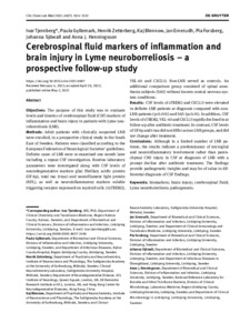 Title: | Cerebrospinal fluid markers of inflammation and brain injury in Lyme neuroborreliosis – a prospective follow-up study |