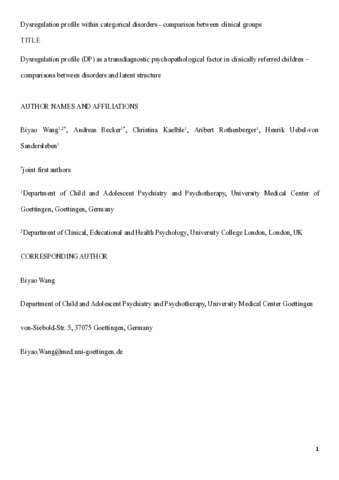Title: | Dysregulation profile (DP) as a transdiagnostic psychopathological factor in clinically referred children – comparisons between disorders and latent structure |