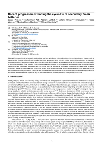 | Title: | Recent Progress in Extending the Cycle-Life of Secondary Zn-Air Batteries |