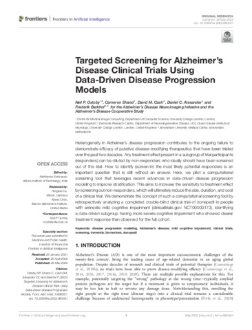 Barkhof_Targeted Screening for Alzheimer's Disease Clinical Trials Using Data-Driven Disease Progression Models_VoR.pdf - Published Version Download (1MB) | Preview |