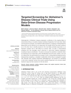 Targeted Screening for Alzheimer's Disease Clinical Trials Using Data-Driven Disease Progression Models.
