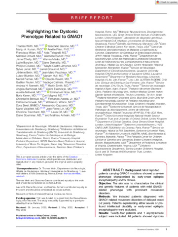 Title: | Highlighting the Dystonic Phenotype Related to GNAO1 |