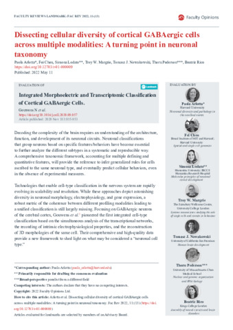 Title: | Dissecting cellular diversity of cortical GABAergic cells across multiple modalities: A turning point in neuronal taxonomy |