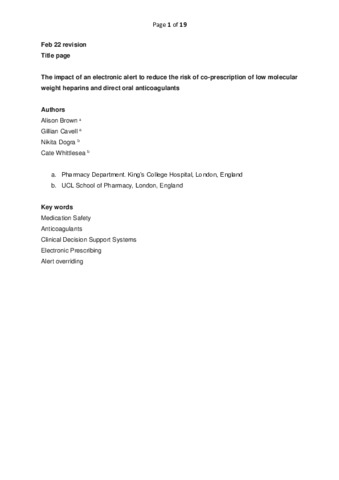 Title: | The impact of an electronic alert to reduce the risk of co-prescription of low molecular weight heparins and direct oral anticoagulants |