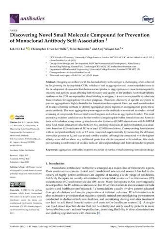 | Title: | Discovering Novel Small Molecule Compound for Prevention of Monoclonal Antibody Self-Association |