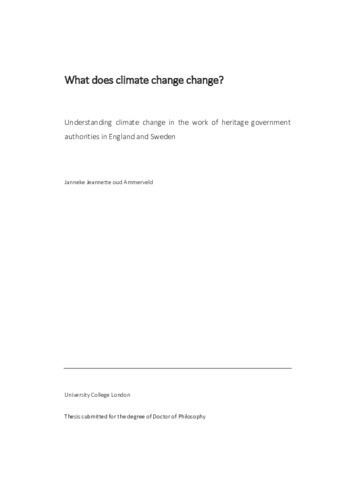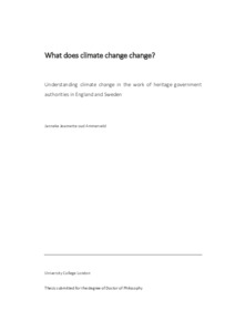 Title: | What does climate change change? Understanding climate change in the work of heritage government authorities in England and Sweden |