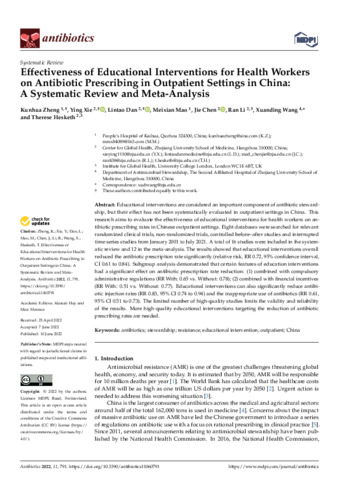 Title: | Effectiveness of Educational Interventions for Health Workers on Antibiotic Prescribing in Outpatient Settings in China: A Systematic Review and Meta-Analysis |