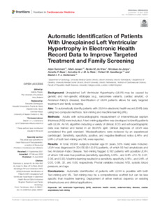 Title: | Automatic Identification of Patients With Unexplained Left Ventricular Hypertrophy in Electronic Health Record Data to Improve Targeted Treatment and Family Screening |