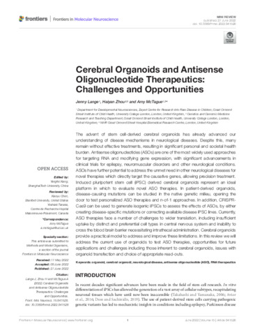 Lange_Cerebral Organoids and Antisense Oligonucleotide Therapeutics_VoR.pdf - Published Version Download (1MB) | Preview |