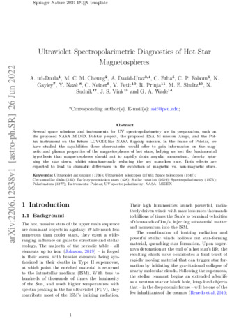 Title: | Ultraviolet Spectropolarimetric Diagnostics of Hot Star Magnetospheres |