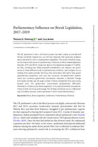 Title: | Parliamentary Influence on Brexit Legislation, 2017–2019 |
