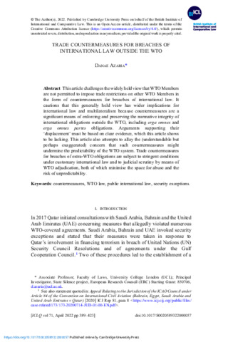 Title: | Trade Countermeasures for Breaches of International Law Outside the WTO |