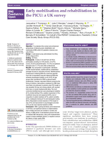 | Title: | Early mobilisation and rehabilitation in the PICU: a UK survey |