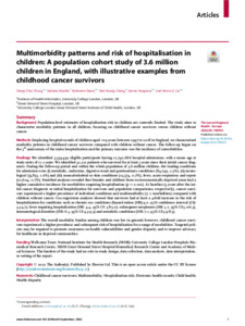 Multimorbidity patterns and risk of hospitalisation in children: A population cohort study of 3.6 million children in England, with illustrative examples from childhood cancer survivors.