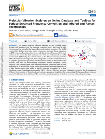 Title: | Molecular Vibration Explorer: an Online Database and Toolbox for Surface-Enhanced Frequency Conversion and Infrared and Raman Spectroscopy |