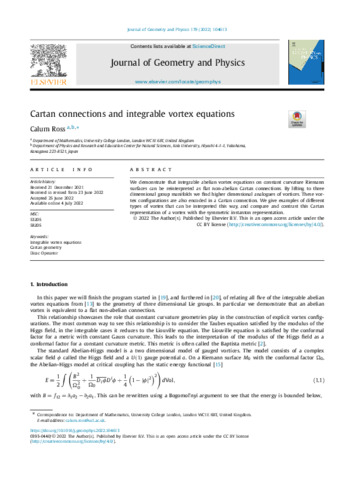| Keywords: | Integrable vortex equations, Cartan geometry, Dirac Operator |