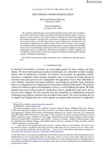 Keywords: | Information design, falsification, tests, manipulation, cheating, persuasion |