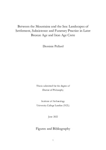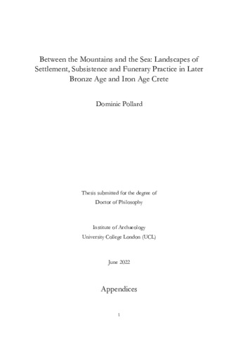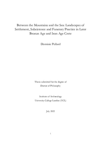 Title: | Between the Mountains and the Sea: Landscapes of Settlement, Subsistence and Funerary Practice in Later Bronze Age and Iron Age Crete |