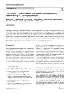 Title: | “Peas in a pod”: Oral History Reflections on Autistic Identity in Family and Community by Late-Diagnosed Adults |