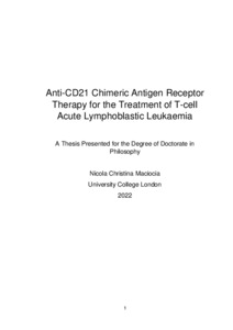 Title: | Anti-CD21 Chimeric Antigen Receptor Therapy for the Treatment of T-cell Acute Lymphoblastic Leukaemia |