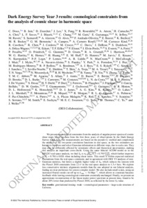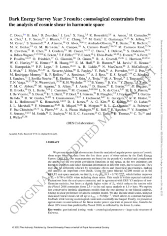 Dark energy survey year 3 results: cosmological constraints from the analysis of cosmic shear in harmonic space.